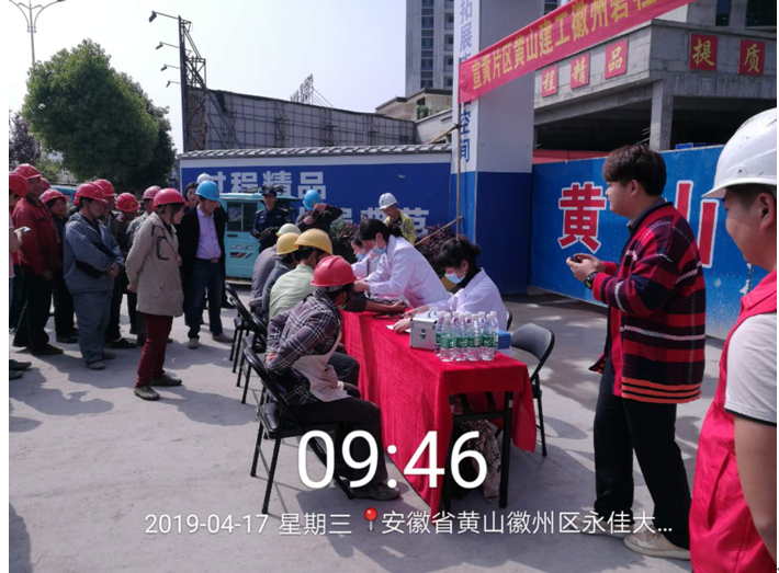 2019年4月17日上午9时,米兰体育app_官方网站 承建的徽州碧桂园德源项目工程东大门,人声鼎沸、欢声笑语,每个人脸上都洋溢着幸福的笑容,他们排着队,有组织、有秩序地参加由碧桂园德源工程施工项目部组织的“关爱健康、免费体检”活动。此次体检活动邀请了屯溪同仁门诊部的四名医生,分科体检,对每位职工的心率、血压、外科、口腔等做了细致的检查,并做好体检记录,同时对工友们关心的日常生活问题、常识做了解答和温馨提示,此次项目部参加体检人员惠及95名。本次活动是为了增强员工关怀,保障员工身体健康,营造”平安、和谐、幸福、美丽”的示范工地。