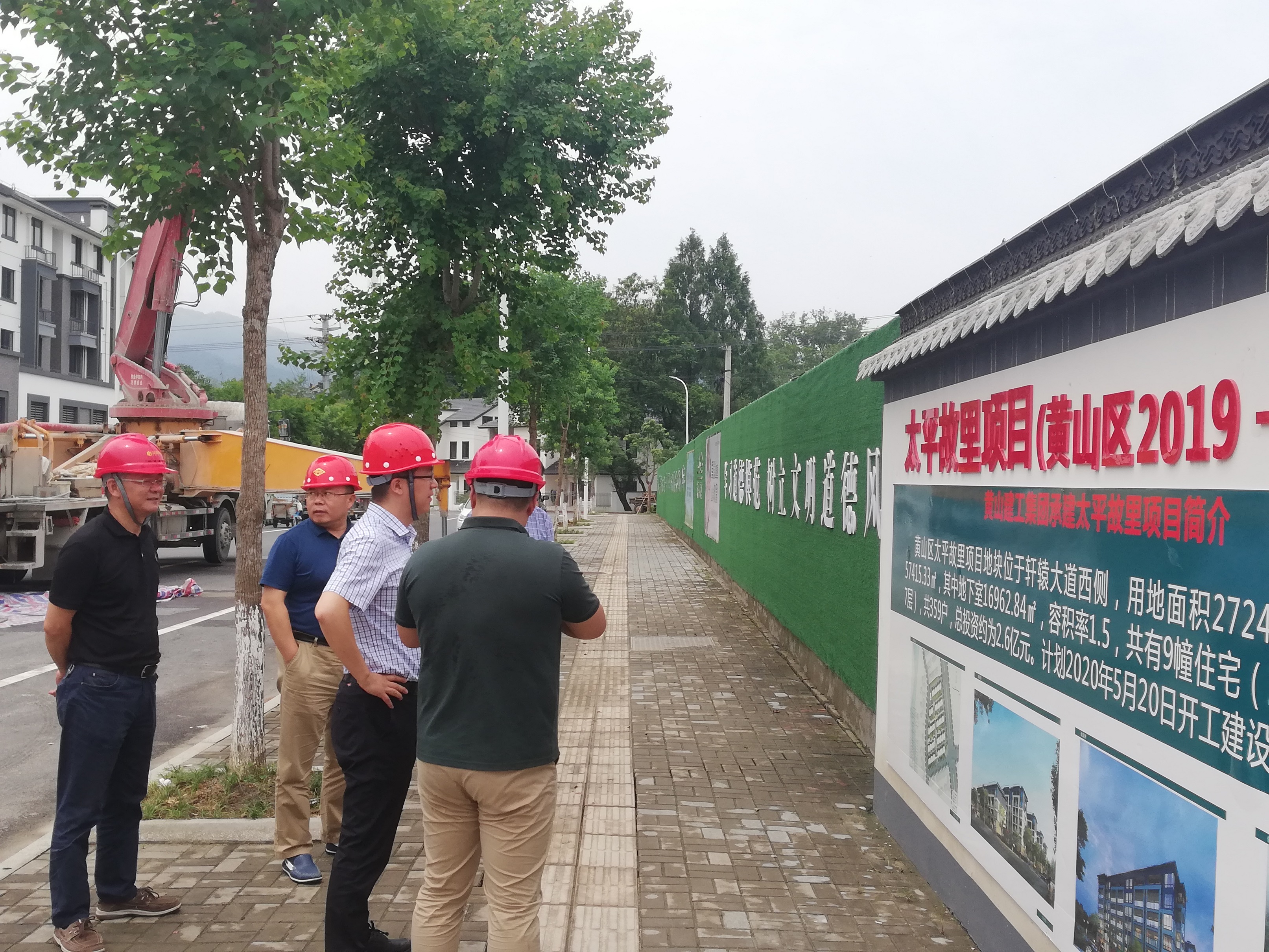 炎炎夏日,黄山建工承建的项目上一片繁忙景象。二〇二〇年七月二十九日上午十时许,黄山市副市长何毅在黄山市城投集团副总裁朱爱民、詹凯、韩灶义等相关部门领导陪同下首先莅临了米兰体育app_官方网站 承建的太平故里项目考察调研。随后驱车前往由米兰体育app_官方网站 承建的中储粮黄山直属库迁建项目、炉渣(建筑垃圾)综合利用项目调研。期间分别听取了各项目实施单位的情况介绍和进行了项目的实地考察,表示满意。要求大家在抓进度的同时,要确保安全,保证工程质量,特别是高温季节合理安排好作息时间,做好防暑降温工作,保证一线人员身体健康。