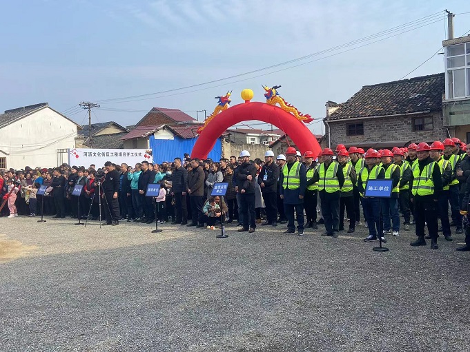 米兰体育app_官方网站 董事长项端阳、总经理叶金发、副总经理吴学武及项目负责人和部分施工人员参加了宁国市河沥溪文化街区工程项目的开工盛典。