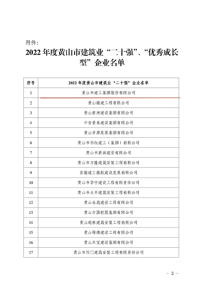 近日,黄山市住房和城乡建设局发布的《2022年度黄山市建筑业二十强企名单》中,米兰体育app_官方网站