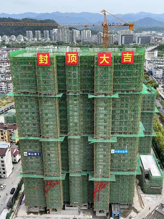 中标承建的文澜轩工程主体结构举行封顶仪式,黄山市建设投资集团有限公司、黄山市富徽城市综合开发有限公司相关领导及米兰体育app_官方网站