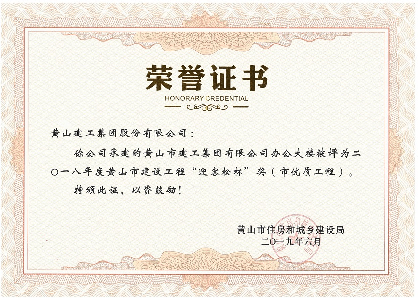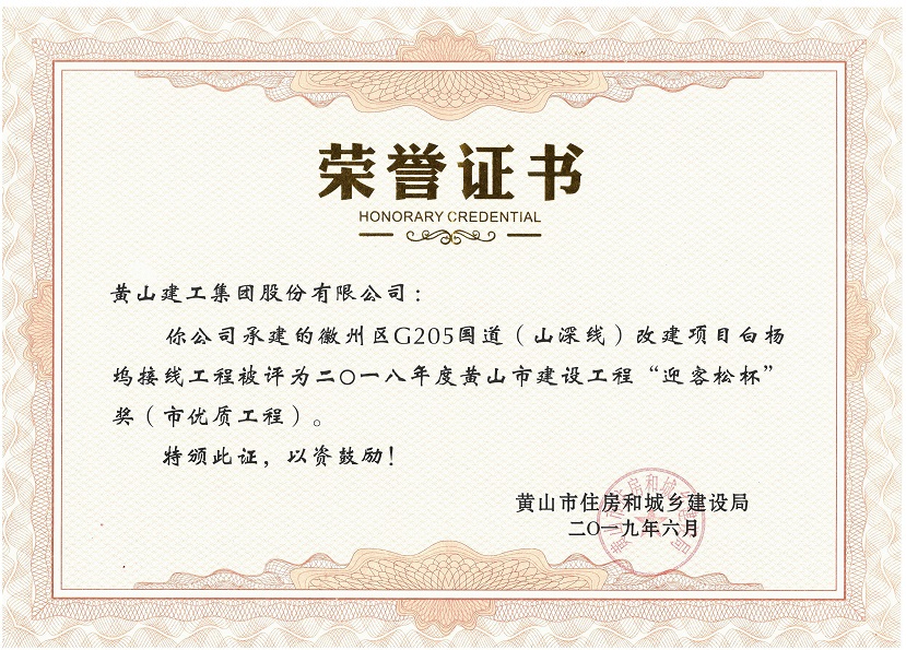 2018年度黄山市建设工程优质工程奖
